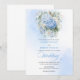 Set the tone for a stylish and unforgettable celebration with this watercolor blue and gold wedding invitation, designed around today’s most trendy wedding color palette. Featuring soft pastel, powder, light, and pale blue hydrangeas, paired with fresh eucalyptus greenery and elegant gold floral accents, this design captures modern romance with timeless appeal.