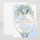 Luxury Blue Peonies Gold Quinceañera 15th Birthday Invitation