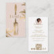 Make a refined and unforgettable first impression with our elegant, modern, and luxurious lash artist studio business card design. The front of the card features our exclusive hand-drawn, sketch-style illustration of a faux gold, elegant flourish mascara stick, beautifully paired with faux gold leaves for a chic, sophisticated look. All illustrations are finished in an elegant faux gold tone and set against a soft light blush pink background, which can be customized to perfectly match your studio’s branding. Personalize the front with your studio name or replace it with your logo to showcase your unique lash brand. The reverse side features a clean, stylish layout for your contact details, including a circular photo frame for your professional portrait and space for a QR code—ideal for linking to your website, online booking page, or social media profiles. Perfect for lash artists, lash extension studios, beauty technicians, estheticians, and luxury beauty businesses. This timeless design blends femininity, elegance, and professionalism to create a high-end, polished impression for every client. Design and illustration by © Moodthology Papery.