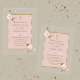Modern and elegant card design featuring watercolour delicate pink blush flowers and green leaves, faux gold outlined flowers, a faux gold cross, a pink shape with faux gold frame, floral divider, on a transparent background. Use Personalise tool to add your info. For matching items, please, visit my Elegant Transparent Baptism Collection.