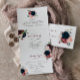 This luxury boho colourful trifold wedding invitation is perfect for a rustic wedding. The design features elegant watercolor blue, burgundy, pink and blush flowers with green foliage.