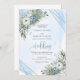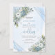 Luxury Boho Dusty Blue Silver Peonies Wedding Invitation