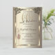 Elegant gold frame, and champagne glass on gold background.