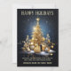 A beautiful and luxurious design featuring a single golden Christmas tree surrounded by sparkling glimmering wrapped gifts resting on fresh snow. The tree is surrounded by a dark blue background filled with small snowflake flurries. The tree has a large single star on the top and templates for your business year end greeting to customers and for your custom message appear above and below the illustration. This traditional, classic and timeless design is ideal for any professional, business or corporate looking for an upmarket and sophisticated design to send to customers, clients, friends and family to thank them for their support over the year. There are additional templates for your qr code (or replace it with your logo) and staff photo on the back. These are ideal for the festive holiday period and convey the spirit of the season. Happy holidays!