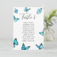 Blue watercolor butterflies Wedding Table plan. Elegant choice for summer weddings. Part of a wedding collection. Card with Meal Choice.