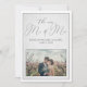 The front of this post wedding reception invitation card features 'the new Mr. & Mrs.' in a gorgeous, modern, hand lettered calligraphy font, followed by your names, wedding date, and your wedding photo below, all against a fine art watercolor paper background. (It is super easy to personalise this card as it is a template design.)