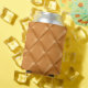 Modern luxury car brown leather interior. Part of perforated leather car seat details. Orange perforated leather texture background. Texture, artificial leather with diagonal stitching.