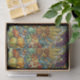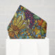 A richly layered fall pattern inspired by stained glass and Arts & Crafts design. Pumpkins, gourds, wheat sheaves, grape clusters, acorns, and vibrant autumn leaves intertwine through flowing vines and decorative florals. The jewel-toned palette of teal, sapphire blue, golden yellow, burnt orange, olive green, and plum creates depth and warmth, while bold outlines and curved forms give the design a handcrafted, artisanal feel.