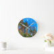 The clock did not take as long to arrive as I thought it might and was extremely well packaged. I didn't do the measurements so I didn't realize it is a little smaller than the average clock but that does not matter (just make sure you check if that's important to you).It is really nifty! It seems very solid and well made not flimsy at all. It has been going well and has kept good time in its few weeks on my wall. Nice product. Gets noticed too! Nicer in real life than the picture but true to the picture