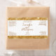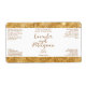 A label for cosmetics and/or soap products with a white background and a faux gold glitter border. This label contains space for your product name, business name, product weight, ingredients, instructions, social media, and business address. This label measures 3.75 inches by 2 inches (95 mm by 51 mm) and is suitable for bottles with a diameter of 1.2 inches (31 mm) or more such as 4 oz (120 ml) bullet, cylinder, and boston round bottles. It can also be used for cosmetic jars and other types of cosmetics packaging.