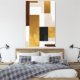 A geometric composition of golden and brown cubes that interlock perfectly. The minimalist and elegant art reflects wealth and sophistication, making it a perfect piece of art for modern environments.