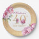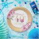 Luxury 40th Birthday Floral Pink Gold Glitter Paper Plates. Easy to personalise. Matching products can be found in Luxury Adult Peonies Birthday Collection.