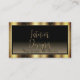 Make a lasting impression with this elegant and luxurious business card design featuring a shimmery dark gold frame and fine decor stripes with a modern black gradient background.