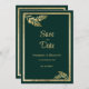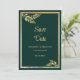 Luxury dark green golden leaf frame Save the Date Invitation