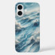 A breathtaking and artistic phone case design featuring a dynamic abstract ocean texture. Flowing waves of deep sapphire blue and crisp white create a sense of movement, accented by delicate white pearl-like spheres floating within the crystalline water layers. Perfect for a serene, modern, and high-end look.