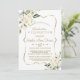 Elegant card design featuring watercolour delicate white flowers and green leaves, a faux gold frame, floral divider, on a white background. On the back white flowers bouquet. Use Personalise tool to add your info, change fonts, font's colours. For matching items, please, visit my Delicate White Flowers Collection.