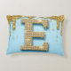 Luxury Diamond Letter E on Gold Glitter Background Decorative Cushion