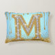 Luxury Diamond Letter M on Gold Glitter Background Decorative Cushion