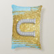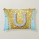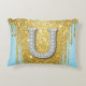 Luxury Diamond Letter U on Gold Glitter Background Decorative Cushion