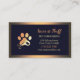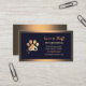 Unique gold peach and navy-blue design dog paw print and scissors pet grooming or sitting service business card. Easily personalise this with your own name and details to make it your very own.