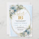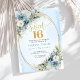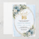 Luxury Dusty Blue Floral Sweet Sixteen Birthday Invitation