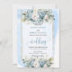 Ideal for formal, modern, or rustic-chic weddings, this dusty blue and gold floral invitation pairs perfectly with matching stationery, RSVP cards, menus, and signage for a cohesive event design.