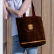 Classy exclusive looking office or personal monogrammed tote bag featuring a faux copper metallic gold glitter square with your monogram name initials and a sparkling stripe over a stylish dark brown faux leather look background. ++++++++++++++ Suitable for small business, corporate or independent business professionals, personal branding or stylists specialists, makeup artists or beauty salons, boutique or store managers. +++++++++++++++ Please note that the leather texture and glitter sparkle effects are PRINTED.