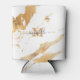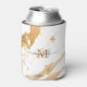 Luxury Elegant Script Monogram White Gold Marble Can Cooler