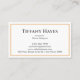 The front side showcases a clean ivory-white background framed with a refined double border in soft gold tones. Your name and title are beautifully highlighted in a classic serif font, creating a polished and professional look ideal for designers, consultants, creatives, and upscale service providers. The layout includes neatly arranged contact details, offering a clean and readable presentation.