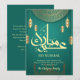 Celebrate the joy of Eid with this luxurious emerald green card featuring a detailed gold mandala and hanging lanterns. The intricate geometric borders and mosque silhouette add a premium feel to your holiday wishes.