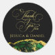 Gorgeous and luxurious, abstract alcohol ink wedding thank you stickers. Deluxe emerald green, black and gold with a chic script font. Easily edit the template to the names of the bride and groom. Original art made of alcohol ink by international artist Pauline Benjes. Luxury Emerald Green Gold Custom Classic Round Sticker.