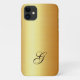 iPhone protection case in a luxury faux golden design with a customizable initial on it.