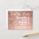 elegant, modern and simple faux rose gold leaf wedding save the date, stylish, luxurious and chic faux foil rose gold leaf background