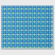 A roll of luxurious Wrapping Paper, with a grid pattern of circles in turquoise and neon green on a bright blue background. Part of the Posh & Painterly 'Blue Moons' collection; from a handpainted paper collage design by Judy Adamson.