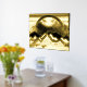 Get your real gold foil print 18x24 inch with minimal modern abstract mountain landscape and moon in complete gold shiny tones with a changeable black onyx background. It has a luxury style with the real gold foil and it is nice for your interior rooms. The poster print is available in different sizes. You might change the background and sizes as well.