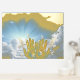 Get your real gold foil print 18x24 inch with gold real foil hands and sky as an overlaying. The religous background shows a cloudy stairways to heaven, with a blue white shining ray of light and has also peaceful white pigeons. The romantic modern religious style with the real gold foil is nice for your homes. Choose different sizes, white surrounding border or none. Put it in a nice frame ant it looks even more luxurious.