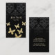 Luxury Gold Butterflies Dark Damask Business Cards
