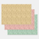 This set of three elegant wrapping paper sheets features three colours of a Victorian-style damask pattern. Gold, dusty pink and mint green. The gold glitter used in these prints is simulated, not real glitter. Original artwork by Marketa Stengl.