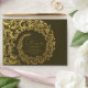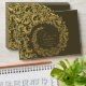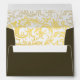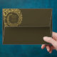 This envelope design is rich and luxurious, featuring an elegant gold damask floral frame that curls and flows around the centre. The intricate golden swirls and ornamental patterns stand out beautifully against the deep dark background, creating a regal and celebratory appearance. At the centre, the recipient’s name and address are showcased in matching golden text, blending seamlessly into the overall theme. The combination of dark tones with metallic gold gives this design a formal, sophisticated, and timeless charm—ideal for weddings, anniversaries, gala events, or high-end formal correspondence.
