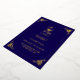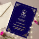An Iftar dinner invitation with luxury gold foil Islamic kettle illustration for iftar. The card is easy to customise with your wording, paper shape options, and choice of paper types. The dark blue and gold lanterns look stunning on the front while the backside makes this iftar party invitation truly unique.