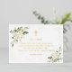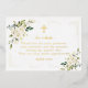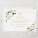 Luxury card design featuring watercolour delicate white flowers corners, GOLD FOIL frame, confetti, all wording, cross, on a white background. On the back white flowers bouquet and cross. Use Personalise tool to add your info. For matching items, please, visit my Gold Foil Baptism Collection.