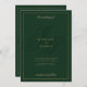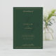 A sophisticated luxury gold and forest green monogram initials stylish theme minimalist wedding invitations.