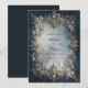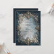 Invite your guests to a celebration of opulent luxury and dramatic elegance with this exquisite wedding invitation. The design features a stunning, rich dark teal and emerald distressed background, giving it a luxurious, antique texture with subtle gold veins. A prominent sleek, stepped metallic gold rectangular frame dominates the scene. This frame is lavishly draped with clusters of midnight blue and soft gray foliage, accented by delicate white and pale pink flowers. Bold sculpted gold baroque medallions anchor the corners and bottom center, enhancing the regal feel. This aesthetic conveys a deep, sophisticated richness, perfectly setting the stage for a dramatic, high-end, or formal evening wedding. This invitation card is ideally suited for a luxury formal evening wedding, a chic engagement celebration, or a sophisticated vow renewal ceremony. It would also perfectly suit a stately winter gala or an elegant black tie anniversary event. The card's captivating blend of ornate gold accents and deep-toned florals ensures it is versatile for any solemn ceremony, corporate gala, or refined birthday announcement.