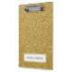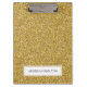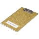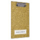 A festive Luxury gold glitter background image provides a glamourous backdrop to this personalised clipboard design. Your name or business name is elegantly styled in a faux gold trimmed nameplate on the front.