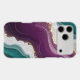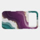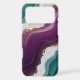Soft flowing waves of teal and deep purple blend together with shimmering gold sparkles. A stylish abstract pattern with a modern and luxurious feel.