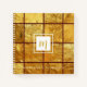 A luxury gold grid sparkle square with a script monogram initial overlays a rich, gold and dark background on this chic, elegant, trendy, custom name monogram square spiral notebook. You can personalise it with your initial/s. A great gift for a friend, as well as for yourself!