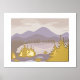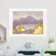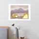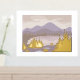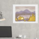 Get your real gold foil print 18x24 inch with a pastel, lilac, purple mountain, sea and landscape with trees in complete gold shiny tones. The trees have a luxury style with the real gold foil and is nice for nordic homes. Choose different sizes, white surrounding.
