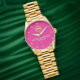 Luxury Gold Personalized Custom Roman Numeral Timepiece with Pink Dial for Weddings & Anniversaries