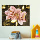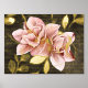Transform your living space with our exquisite 18x24 inch real gold foil print, showcasing the ethereal beauty of a lily blossom, , against a customisable brown background. Crafted with meticulous attention to detail, this stunning artwork features delicate pink blush blossoms accented with shimmering real gold foil, adding a touch of luxury and modern elegance to your home. Personalise this botanical masterpiece with your own touch of love, including other designs. With the option to choose from various sizes and add a white surrounding border or none, you can customise it to perfectly suit your space and style preferences. Designed by Hobinishop, this artwork seamlessly blends minimalist sophistication with opulent charm, creating a captivating focal point for any room. Elevate your decor by framing this exquisite piece, enhancing its already captivating allure and bringing a sense of refined beauty to your surroundings. Redefine elegance with our real gold foil print and infuse your home with the timeless allure of nature's finest blossoms.