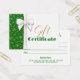 Luxury and rich holiday design featuring splendid Christmas gift bow and golden snowflakes pattern on a green background. This festive gift certificate is perfect for your small business or to gift friends and family.